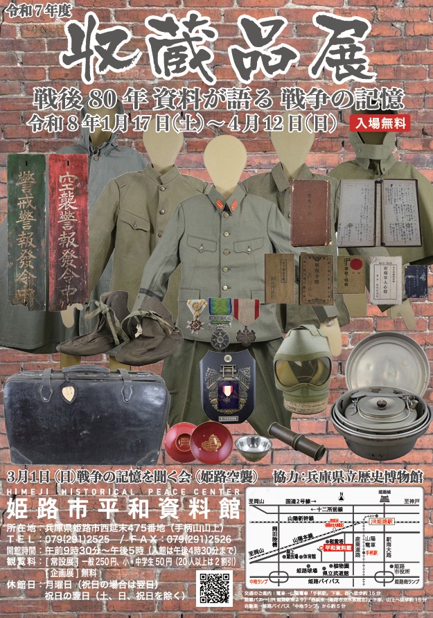 姫路市平和資料館には現在、書籍等を含め約1万5000点以上の資料が収蔵されています。現在も市内外を問わず多くの方々から戦争...