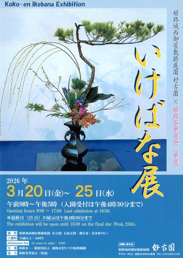 伝統的な生け花から近代的な生け花まで、姫路茶華道会の作品を展示します。協力:姫路茶華道会 (華道)〚開催日時〛2026年3月2...