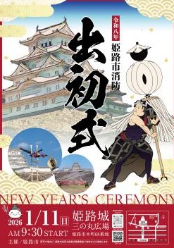 新春恒例行事「消防出初式」が開催されます。〚開催日時〛2026年1月11日(日) / 9:30~11:50※雨天の場合は、姫路市役所北別館3...