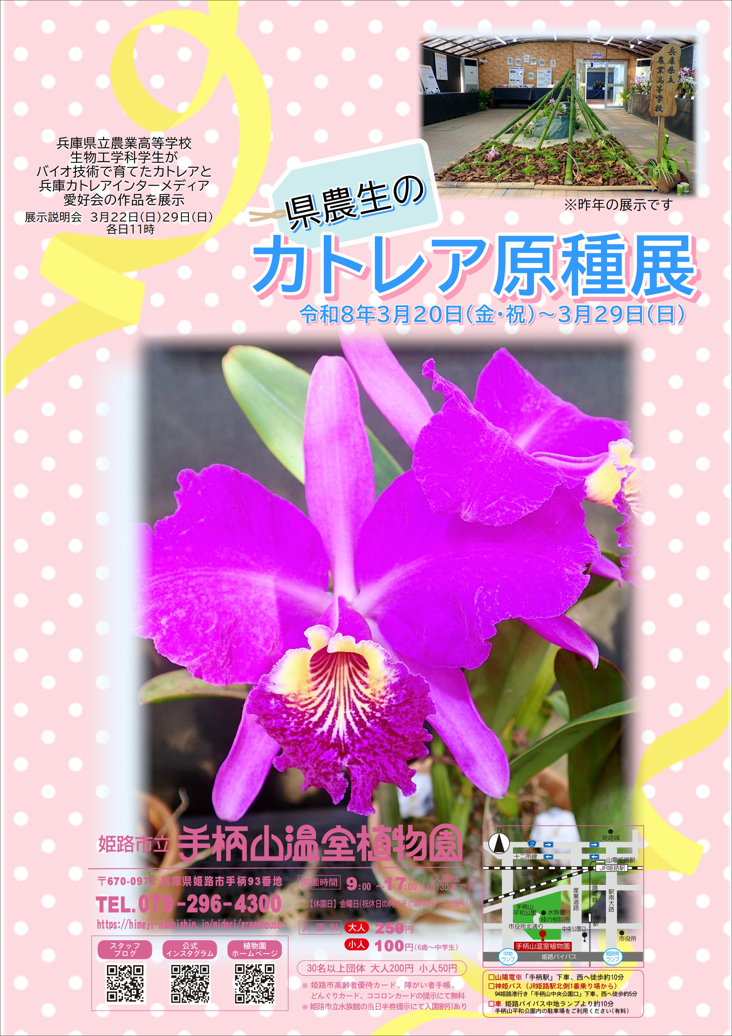 兵庫県立農業高等学校生物工学科学生がバイオ技術で育てたカトレアと兵庫カトレアインターメディア愛好会の作品を約100点展示...