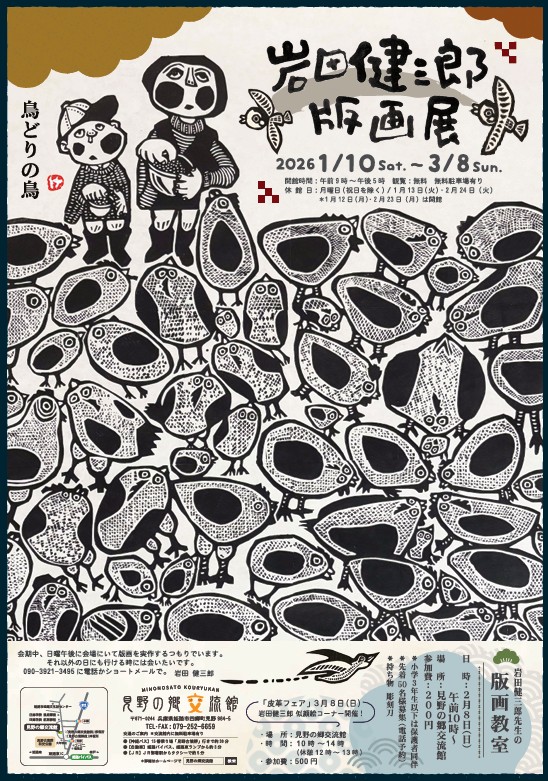 毎年恒例の企画展の1つ、姫路出身の版画家・岩田健三郎さんの作品を多数展示いたします。今回のテーマは「鳥どりの鳥」です。...
