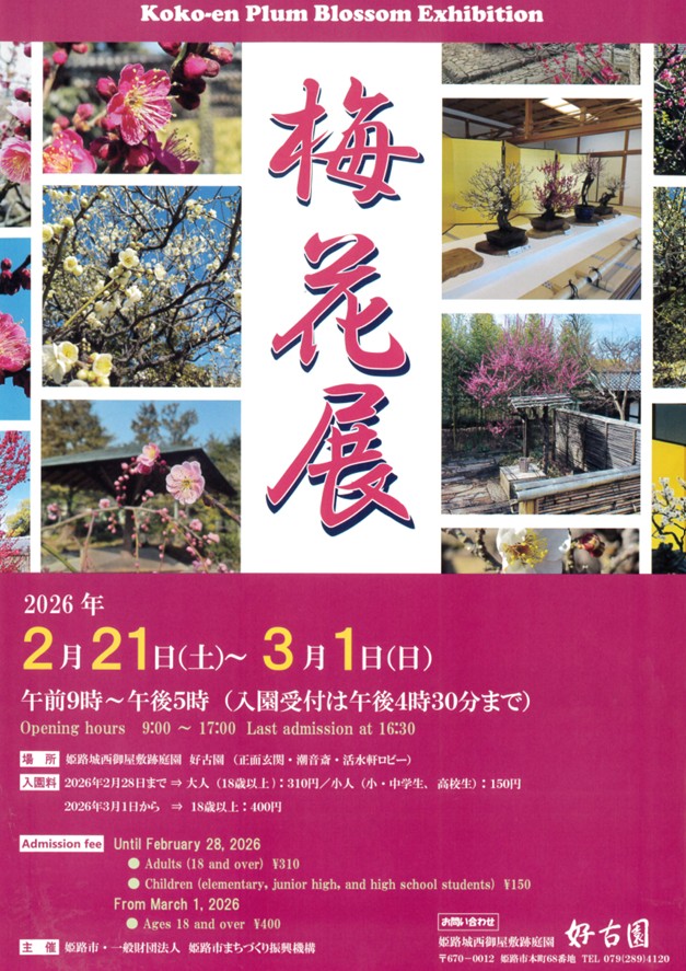 様々な品種の梅の盆栽や深紅、白など色とりどりの梅を園内各所で鑑賞できます。〚開催日時〛2026年2月21日(土)~3月1日(日) /...