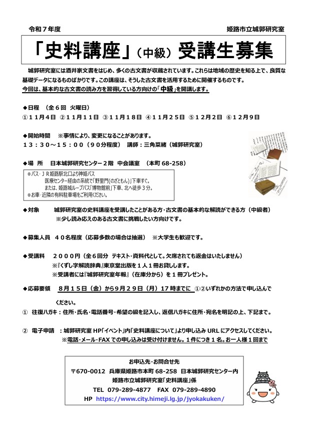 令和7年度「史料講座 (中級)」