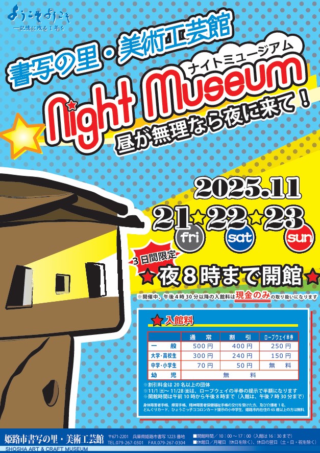 【書写の里・美術工芸館】書写の里・美術工芸館ナイトミュージアム-昼が無理なら夜に来て!-