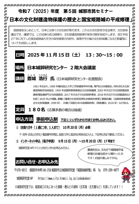 第5回 城郭市民セミナー「日本の文化財建造物保護の歴史と国宝姫路城の平成修理」