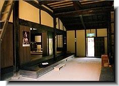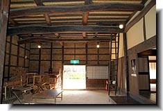 大戸口を潜って建物の中に入ると広い土間で、奧に流し場と納屋があり、左手に居室が続いている。農家によくある田の字型の4間取りではなく、6間取りになっているのが特徴で、表しになった太い柱や木の歪みを生かした黒光りする梁、部屋と部屋を仕切る板戸や襖、土壁が古びた味わいを見せ、そのまま江戸から戦前にかけての豪農の屋敷にワープした感じ。