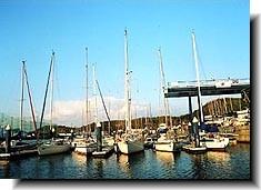 その遊歩道の西端に連なるのが木場ヨットハーバー。八家川の河口に開設されたもので、瀬戸内海のクルージングを楽しむシーマンたちの母港として親しまれているが、あの堀江謙一氏が太平洋単独航海に初めて乗り出したのもこの港。今はオフシーズンとあってか船の出入りは少ないが、海上ブースにはカラフルなクルーザーやボートがポールを天に突き立てて停泊し、大きなクレーンのある陸上ブースには上架された船が静かに骨を休めている。