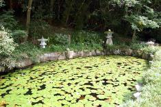 もう1つ、集落の東寄りにあるのが霊亀2年(716)に徳道上人によって開創された古刹、富田山性海寺(しょうかいじ)。車でも上れる山道をたどっていくと、城郭のような白い塀を巡らせ、妻入りの本堂と薬師堂がひっそりと寄り添った趣のある寺が現れる。本堂は寛文六年(1666)の再建で、風雪に色褪せた木造建築の質感がなかなかの味わいを見せ、歴史ドラマにも使えそうな雰囲気。質素な造りの鐘楼、樹齢300年以上という五葉松、蓮の葉を浮かべた池などもしっとりとした落ち着きがあり、ショットに取り込みたいところ。集落にもう1つある赤松氏ゆかりの寺、西方寺の門前あたりもなかなかの趣があり、一帯がかつては城下町として栄えたという史実を裏づけているようでもある。