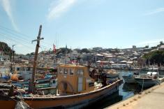 2006年春に姫路市と合併した家島町。家島群島と呼ばれる瀬戸内海に浮かぶ大小40余りの島々からなる町だが、その島の一つ坊勢島は人口3200人のうち600人が漁師という、まさに漁業の町である。姫路港から定期船で30分弱とアクセスにも恵まれ、漁港や漁師町のロケ地としては手軽な場所だとも言える。島内には奈座、長井、西ノ浦の3つの漁港があり、早朝から夕方まで港に出入りする船でにぎわうが、定められた休漁日である火曜日と土曜日には港内におびただしい数の漁船が舳先を並べてまどろみ、そのそばで赤銅色に日焼けした漁師さんたちが網を繕ったり、仲間同士で談笑したりする光景が見られる。