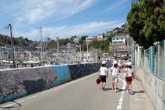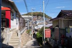 島だけに平地は限られ、背後の山に張りつくようにぎっしりと民家が建て込み、その間を急勾配の坂道と階段がうねうねと続いているが、比較的近年に建築された家が多く、小柳ルミ子が歌う「瀬戸の花嫁」が醸す、どこか”うら寂しい”イメージとはそぐわないかも知れないが、軒と軒が重なるように家々が連なり、まるで迷路のようになった路地をうろついていると、一気に展望が開けて青い青い瀬戸の海や数多くの島々が目に飛び込んできたり、小さな小さな校庭の小学校に出くわしたりと、島ならではの旅の魅力も充分味わえる。
