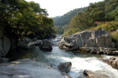 自然に関して言えば、落差88mもある兵庫県下一の名瀑・原不動滝や紅葉の名所・赤西渓谷(波賀町)、作家の田辺聖子さんがその著『すべってころんで』で渓谷美を絶賛し、自らも別荘を構える福知渓谷などがあるが、国道29号沿いの一宮町の閏賀地区付近を流れる揖保川に架かる「流れ橋」も興味深い。時代劇にしばしば登場する木津川の流れ橋に比べれば長さも規模も比較にならないほど小さく、橋桁も木ではなくコンクリートだが、足元だけを撮せば紛れもない流れ橋。流れ橋は同じ町内の須行目地区にもある。