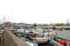 板壁の民家が連なる小さな港町。広い砂浜が続く海浜公園にも魅力が
