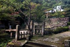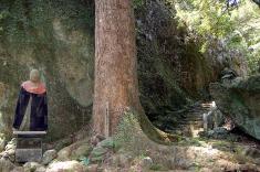 だからこそ逆にロケ地としては魅力があると言え、後で紹介する中世の山城・感状山城の搦手にも通じる渓谷は、歴史ドラマにすんなりと受け入れられそうな趣と佇まいを残している。石仏へと向かう参道入口に立つ苔むした地蔵尊、参道の両側にそそり立つ巨大な石塊、鎮座する石仏を守るために築かれたのであろう古城の趣をたたえた石垣、渓流のそばに幾つも見られる賽の河原のような石積み……。落武者や修験者、忍者や訳ありの旅人がひっそりと辿るような道であり渓谷で、人工構造物も少なく、いろんな場面のイメージが膨らんでくる。