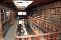 角目から右手に進むと「伏見屋」という本屋さん。明治34年(1901)の創業で、外観などは補修されているが、建物内部は往時と変わらず、吹き抜けになった中央部の天窓から柔らかな陽射しが注ぎ、壁に添って回廊状になっている二階部分の意匠を凝らした木の手すりや書架も昔のまま。学生服にマント姿の戦前の学生たちが熱心に本を読みふける、そんな光景が目に浮かんでくる。