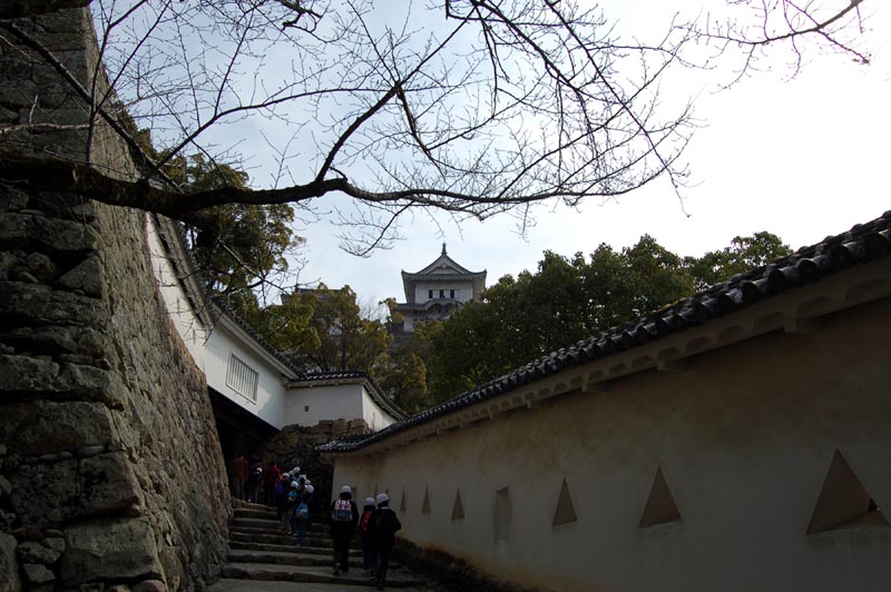 「菱の門」を抜けた三国堀あたりから見上げる天守群の優美な姿、西の丸から望む重厚で風格あふれる佇まい、「はの門」西南方から目にする土塀や石段と大天守との美しい構図、「ほの門」手前に出現する大天守と2つの小天守の破風が織りなす直線と曲線の美、戦国期の山城の城門を彷彿させる「との一門」の背後にそびえ立つ石垣と天守群の組み合わせの妙、備前丸を見下ろすように圧倒的な迫力で空の高みに屹立する大天守、備前丸西方から見上げる天守群の各層の屋根と白く塗り込められた軒裏の響き合うような美しいハーモニーなどなど、姫路城ならではのたおやかな景観を切り取るためには大天守の存在は不可欠で、その意味からも大天守が姿を消さないここしばらくロケや撮影のチャンス。