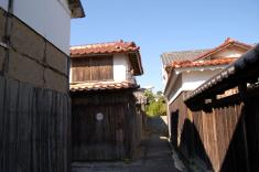 1つは、山陽電鉄「西江井ヶ島」駅から南へ10分ほど歩いたところにある江井ヶ島酒造の酒蔵。約2万坪という広大な敷地に大きな瓦屋根と黒い板壁の築100年前後の酒蔵が数多く残っており、海に向かう道沿いにも古い酒蔵が続き、しっとりとした落ち着きを醸し出している。