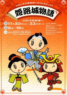 さて、11月20日(土)〓23日(火・祝)の4日間、特別イベント「姫路城物語」を開催します。姫路城内に侍や忍者が出現するばかりか、あなたもお姫様やお殿様に変身!かつての姫路城にタイムスリップしませんか?