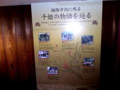 | ◇ | 姫路市内および全国の千姫ゆかりの地を紹介 千姫ゆかりの地を紹介するパネルが設置されています せんひめが男山八幡宮に奉納した羽子板や播州姫路城図の複製とあわせてご覧ください。 |