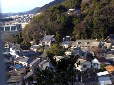 道を下りきると、脇坂氏の上屋敷や茶室「聚遠亭」、藩祖脇坂安治を祀る龍野神社などがあり、さらに下ると映画「男はつらいよ 寅次郎夕焼け小焼け」の舞台となった今なお「昭和」が色濃く残る龍野の古い街並みに出る。