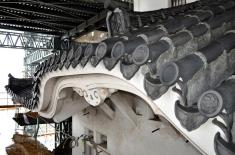 昭和の大修理から約半世紀が過ぎ、近年、大天守の軒や懸魚の漆喰が剥離し、また瓦が破損するなど傷みが目立ってきました。このため、8万枚を超える瓦の全面葺き直し、屋根の目地漆喰の全面修復、壁面漆喰の修復、耐震性を向上させる構造補強などを行う保存修理を平成21年に着手しました。(平成26年度末に完了予定。)