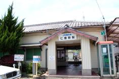 姫路市仁豊野。二級河川の市川と緩やかな稜線を描く山並みに挟まれ、その間をJR播但線と国道が並行して南北に走る、どこかのどかな町である。山の麓には新しい住宅街が形成されているが、仁豊野駅周辺は「昭和」の匂いを色濃く残しており、映像に捉えたいエリアの1つでもある。まず仁豊野駅。現在の駅舎は昭和3年に建てられたもので、ファサードの三角屋根がとても印象的。戦前まで時代を遡ることはできないが、昭和40年代頃の駅舎としては充分使えそうで、特に駅の東を走る国道側から見る小さな駅舎はとても好ましい。