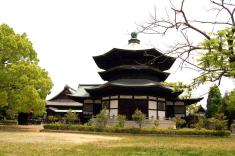 その点、明治から大正にかけて従来の太子堂に法隆寺の夢殿を模した奧殿(八角円堂)・中殿を増築した聖徳殿は、周囲が庭園のように開けているので、「引き」があり、そこそこ時代を遡ることができそうだ。また、どっしりと重たげな本瓦葺きの屋根が印象的な庫裡とその前庭、玄関にも風情があり、何かのドラマのワンシーンに取り込みたい誘惑に駆られる。