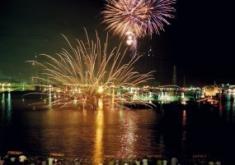 観覧場所(席なし)からわずか300mの台船から打上げられる花火は迫力満点。種類豊富に趣向を凝らした花火が豪快に炸裂する様は圧巻。他ではなかなか見られない尺玉(10号玉)も打ち上げられる予定です。