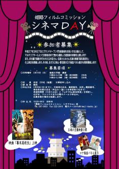 | ■申込先 | 〒670-0012 姫路市本町68 「姫路フィルムコミッション・シネマDay」係 (〓079-287-3653・Fax079-222-2410・電子メールhfc@himeji-kanko.jp) | |||||