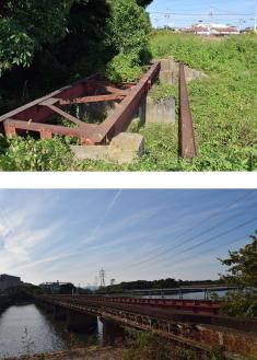 さらに進んでいくと廃線跡は製鉄所の構内に入ってしまい、跡をたどることはできないが、そのまま西に向かって夢前川まで出るとここにも引込線の鉄橋が残っている。いずれは撤去されるのだろうが、「鉄ちゃん」ならずとも、一つまた一つと、時代と人々の思い出が消えていくのはやはり寂しい。