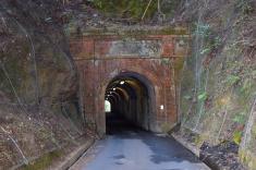 ここでもう一つ紹介しておきたいのが、県道80号から八葉寺への参道に道を取らず、そのまま県道を進んだところにある相坂隧道。大正8年から2年間の歳月をかけ、同10年に完成したレンガ造りのトンネルで、薄暗い蛍光灯が灯るだけの今も軽自動車でしか通れないような狭いトンネルだが、レトロ感はたっぷり。荷物を背負った旅商人やお百姓が引っ張る荷車が行き交う絵を描けそうだ。ちなみにこのトンネル、ネット上では心霊スポットとして話題になっている。