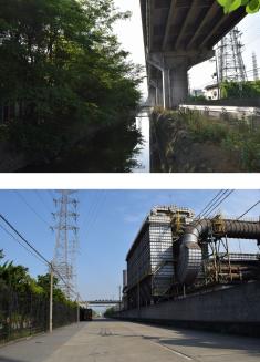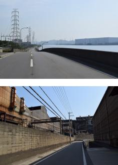 どこを歩いても感じてしまう、人を押しつぶしてしまうような圧迫感。人の心まで殺伐とさせるのか、道路や工場の塀の近くにはペットボトルやビニールごみが散乱している。悲しいが、サスペンスやアクションもの、刑事ものなどに使いたいエリアである。