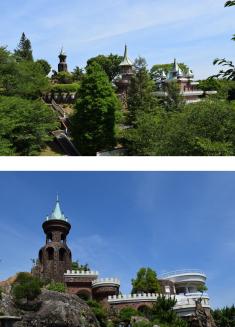 姫路市のホームページではスリラー塔を「西洋のお城風の建物」としているが、確かにそう見えなくもなく、その意味でもまさに多国籍料理ならぬ多国籍建築物。ワールドワイドに悪と戦うヒーロー&特撮ものの架空の舞台としては申し分ないだろう。