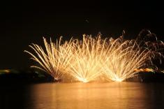 台船から打ち上げられる花火は迫力満点ですので、是非、家族全員で観覧してください。