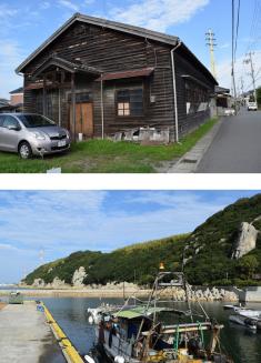 姫路市的形町福泊。漁船が舳先を並べる船溜まりのような港を中心に、家々が軒を並べる小さな港町だが、隣接する的形とともに奈良時代に僧行基が開いた摂播五泊の1つ「韓泊」に比定されており、古い歴史と由緒を誇っている。それだけに映像に取り込みたい場所があちこちに展開している。まず、港の西側に姿を見せる「小赤壁」。高さ50m、長さ800mにわたって、奇岩・奇石が露出した断崖が続く美しい自然海岸で、江戸末期にこの地を訪れた儒学者の頼山陽が、中国の揚子江流域にある赤壁を彷彿させるとの理由で、そう名付けたと伝わっている。年季が入った漁船越しに見るその景色は一服の絵でもある。