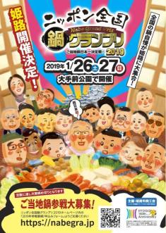 西日本で初開催となるニッポン鍋グランプリ2019in姫路が大手前公園にて開催されます。全国の鍋自慢62チームが集結し自慢の鍋を振舞われます。また、来場者の投票により、その年の「ご当地鍋日本一」を選出する鍋料理コンテストも行われます。