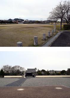 特に、静寂の中に往時の威容らしきものを偲ばせている1辺が200メートル以上もある広大で平坦な跡地の南側を、新幹線の様々なタイプの車両が轟音を響かせ、ほぼ10分間隔おきぐらいに疾走していく光景に目が引かれる。その両者の対比を見るにつけ、奈良の都を中心に栄えた、唐や西域の影響を受けた華やかな天平文化の時代から、時空を超えて、ふと現代にタイムスリップしてきたような、逆に機械文明の発達した現代から仏教が盛んだった古の空間に旅立ってきてしまったような不思議な感慨に襲われるのだ。