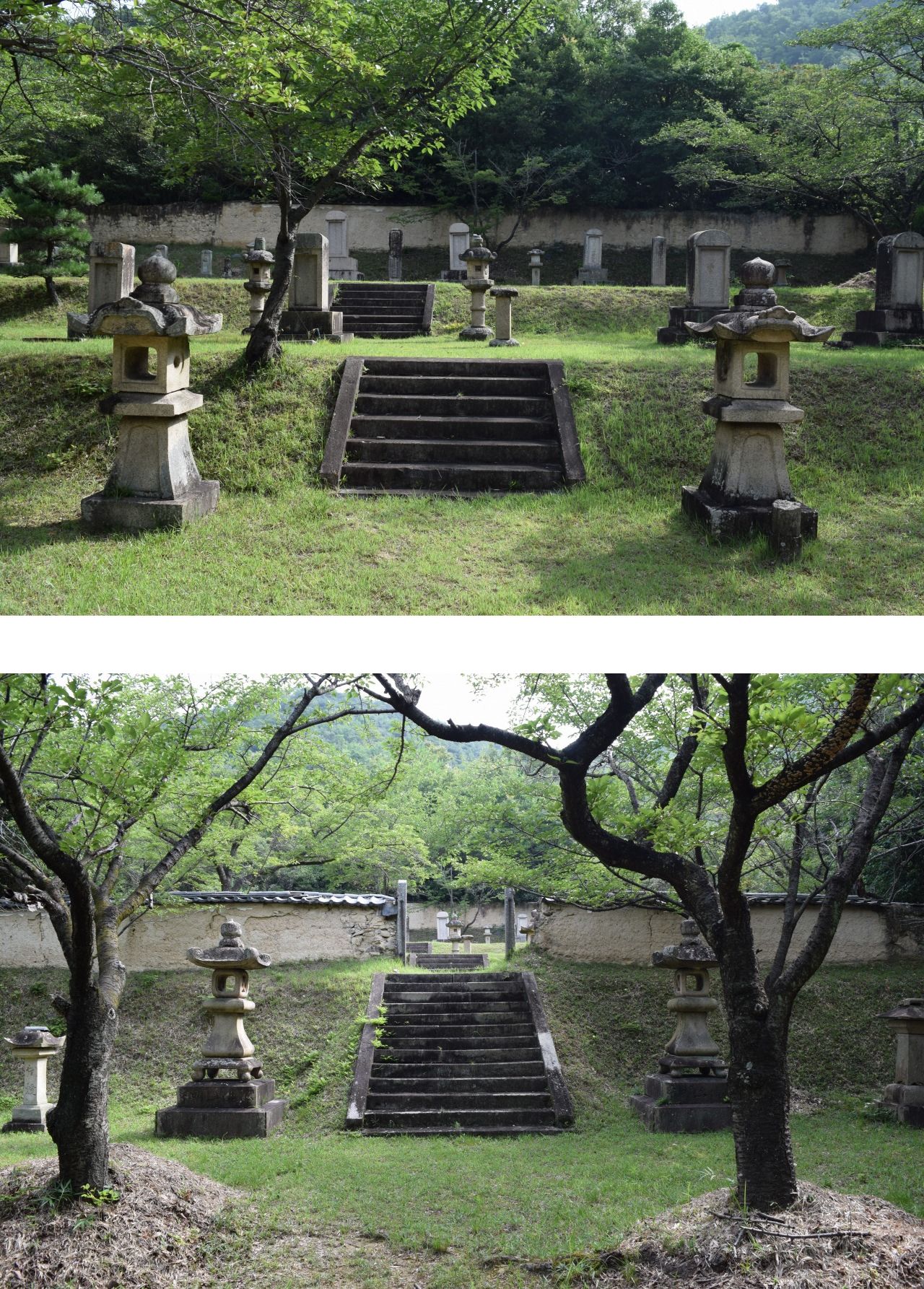 昨今はテレビ時代劇の墓参りのシーンなどにも現代風の墓石群が映り込むことが多く、興ざめすることがあるが、こちらの墓所は緑濃い木立の中に周囲と隔絶して設けてあり、空気も静謐そのもの。今にも両刀を束ねた武士が墓桶を手に現れ、墓前に額づくシーンが想像できるのである。