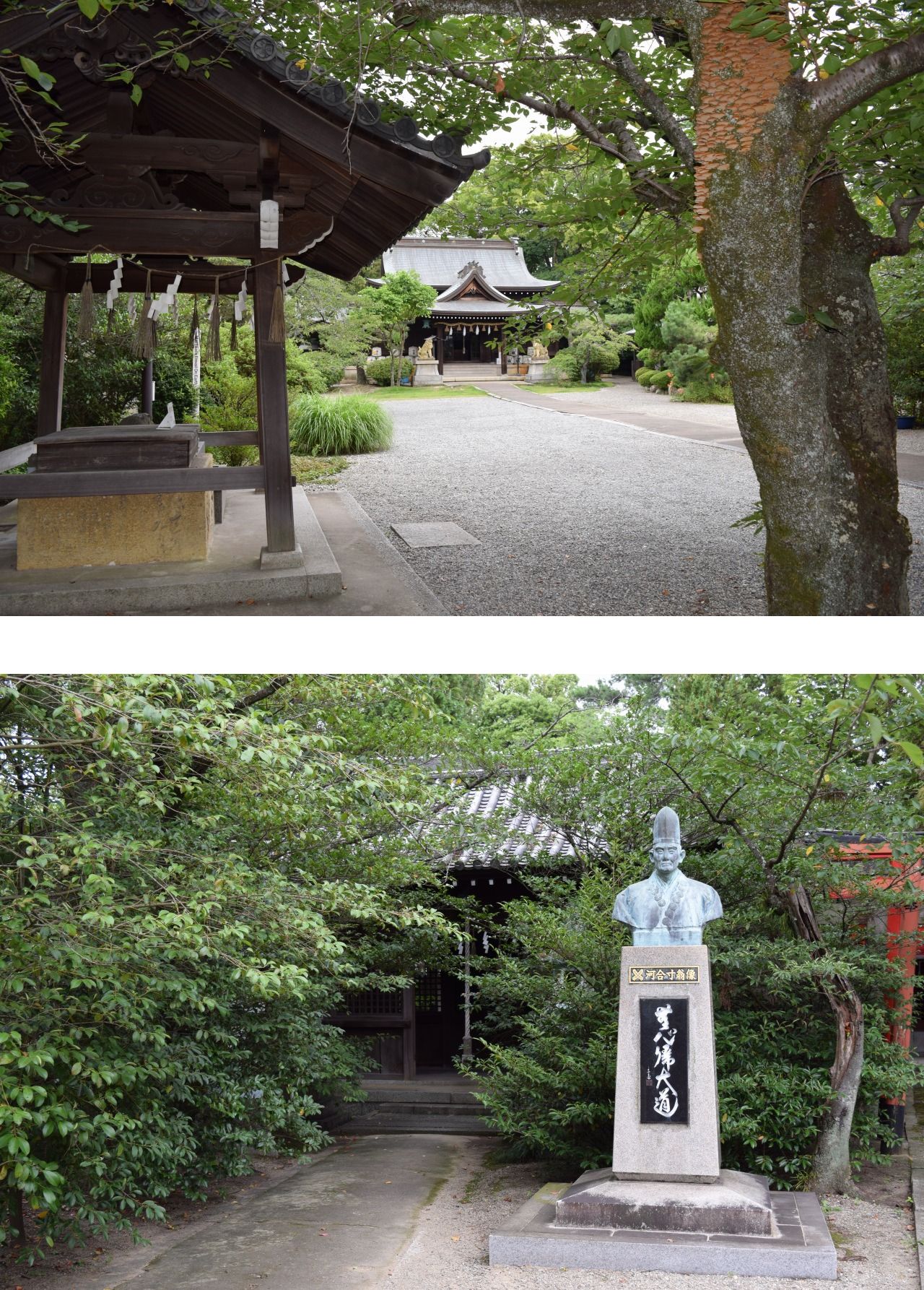 もう一つ紹介しておきたいのが姫路城内にある寸翁神社。酒井家代々の姫路藩主を祀る姫路神社の一画にあり、傍らに河合寸翁(道臣)の胸像が立っている。美術館などがある搦手の喜斎門から入り、城の北側の背隠曲輪に向かう途中にあるのが姫路神社で、こじんまりとしているが、社殿も社務所も石畳の参道も絵になる佇まいで、城の石垣や内堀を取り込んだ撮影もできる。一般の観光客が訪れることもほとんどなく、城内にある神社らしい、静かでゆったりとした時間が流れているのだ。