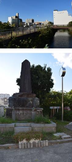 前回、メルマガで紹介した姫路藩中枢部による勤王志士の弾圧、「甲子(かっし)の獄」で処刑された河合惣兵衛ら8名を追悼する記念碑で、幕政時代にこの地に藩の獄舎があった由縁から、大正5年(1916)に建てられた記念碑である。