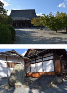 ほかにも鐘楼や明治天皇の行在所なども残るが、しばしば映画やドラマの舞台となってきた亀山本徳寺と違って、周囲に高層ビルやマンションが目立つだけに、時代を引き戻すのには無理がある。江戸時代から時空を超えて現代にワープしてきた寺院と捉えるのが面白いかもしれない。