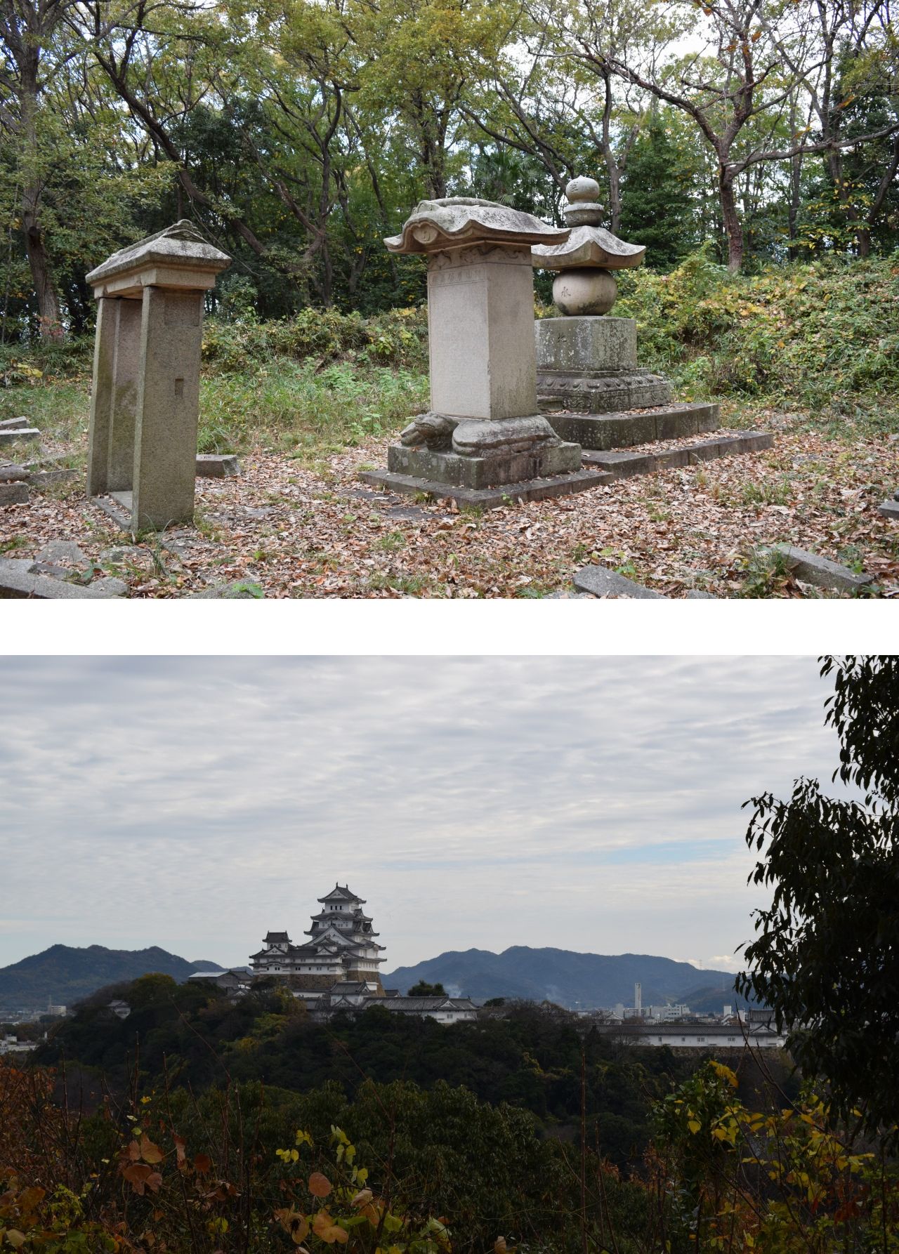 その明矩の墓所から東に行った、樹木の影が途切れた一角に姫路城を間近に望む場所がある。どうやらここが備前岡山藩兵が姫路城に向け大砲を放ったと思われる場所だが、乾小天守と西小天守を従えた大天守が実に美しく、姫路城の遠景としてぜひ取り込みたいアングルである。