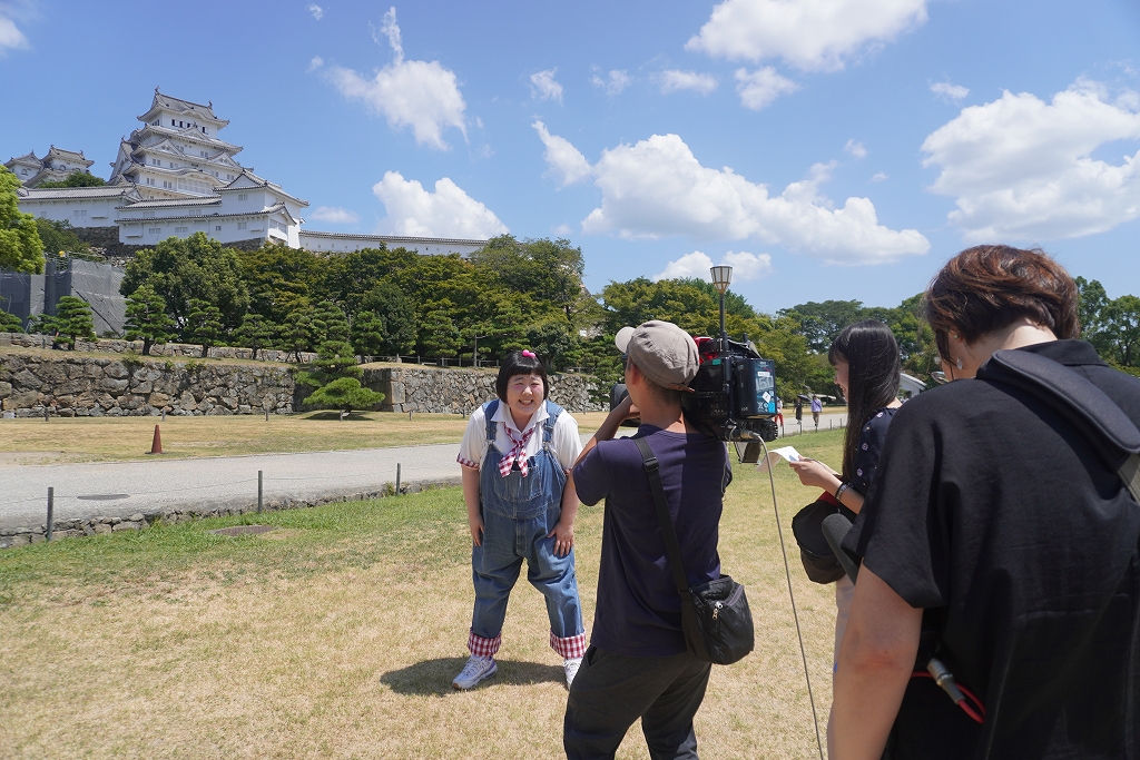 今回は、酒井 藍さんが田舎暮らしに良い物件を紹介するコーナー「あいLOVE田舎暮らし」にて、姫路城の三の丸広場でオープニング撮影をしていただきました。