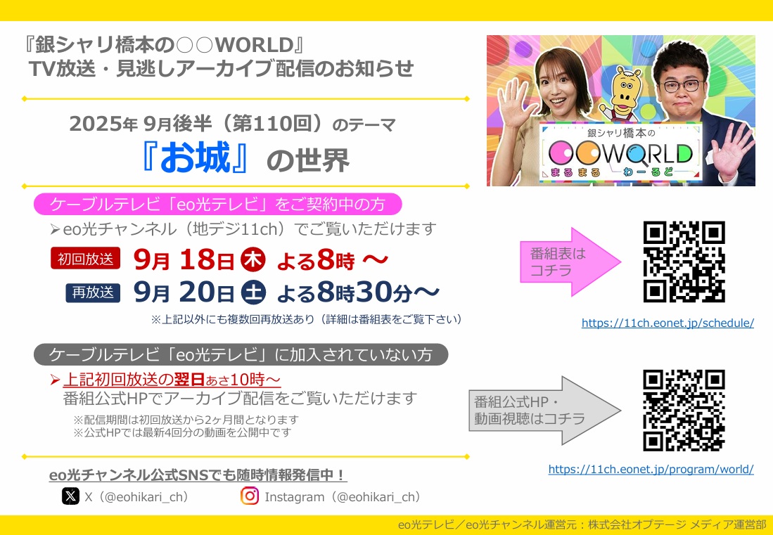 放送番組 「eo光チャンネル「銀シャリ橋本の〇〇WORLD」放送のお知らせ