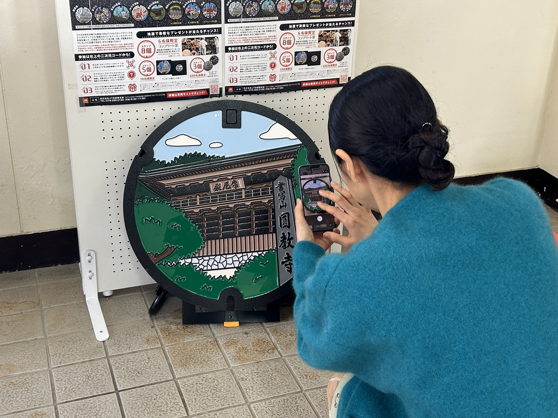 大塩さんは、「姫路城」をはじめ、「まつり」、「姫路セントラルパーク」、「ヤマサ蒲鉾」、「書寫山圓教寺」のマンホールを探され、マンホール蓋を撮影されていました。