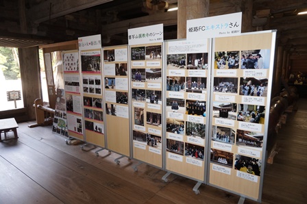 パネル展示では、圓教寺での撮影シーンをはじめ姫路フィルムコミッションのエキストラさんの写真や圓教寺がメインロケ地に選ばれたきっかけや出演者が語った圓教寺の魅力についてなども紹介しています。