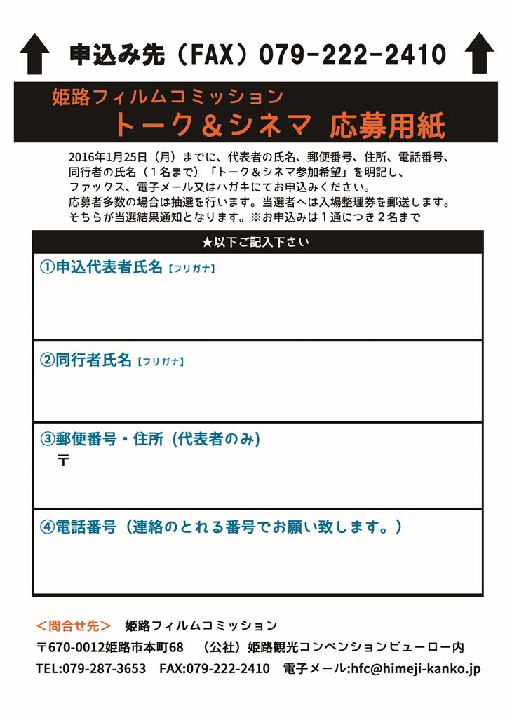 ■申 込 先 〒670-0012本町68 「姫路フィルムコミッション・トーク&シネマ」係