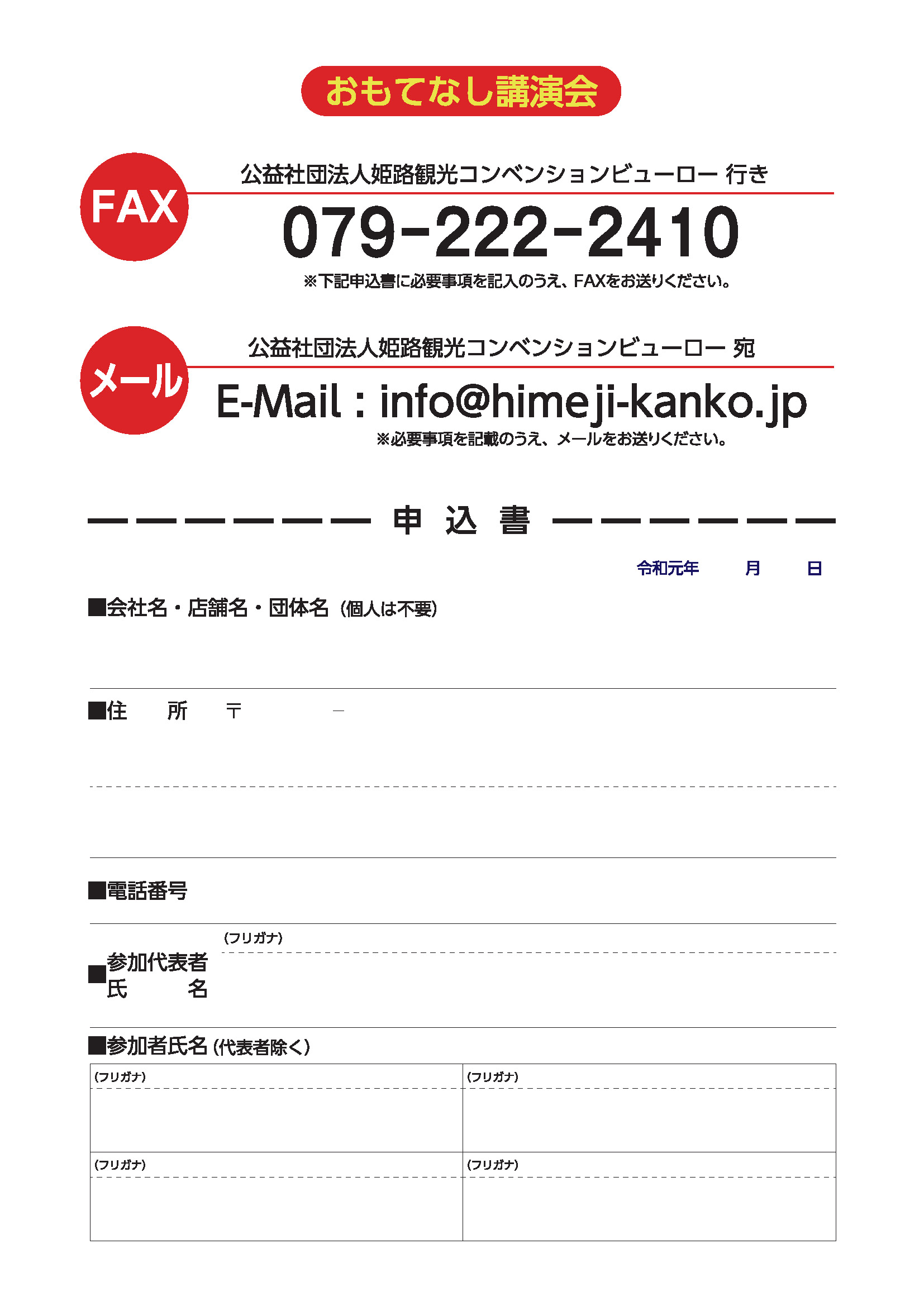 FAX(222―2410)または電子メール(info@himeji-kanko.jp)で応募。