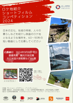 モーション・ピクチャー・アソシエーション(MPA)は、観光庁、在日米国大使館、(一社)日本経済団体連合会在日米国商工会議所の後援を得て、全国に散在するライブアクション映画のロケ地を紹介する60〓90秒のショートフィルムのコンペティションを開催されています。2024年10月に東京国際映画祭関連イベントで結果発表および表彰式を行います。
