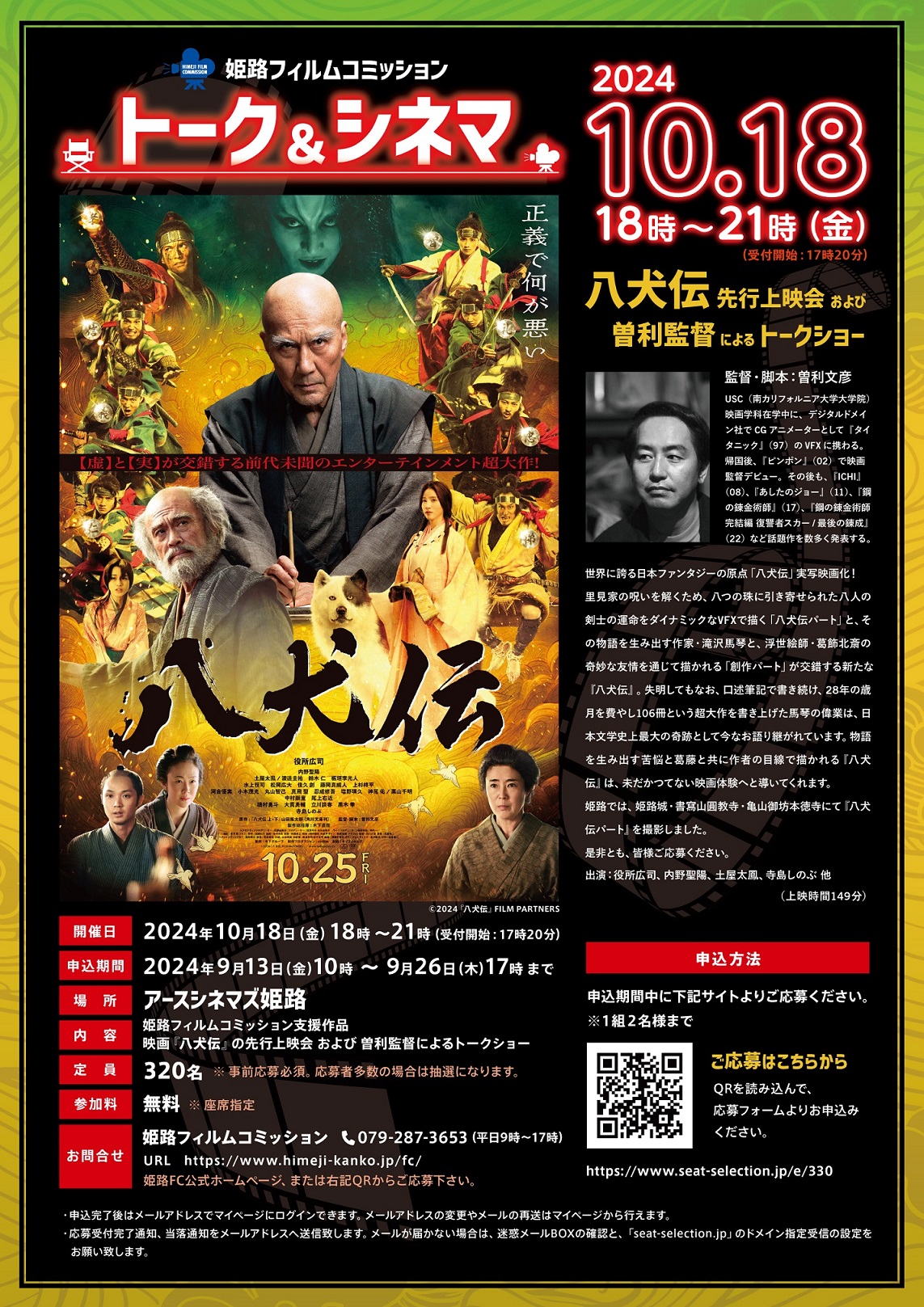 【内容】姫路フィルムコミッション支援作品 映画『八犬伝』の先行上映会と曽利監督によるトークショー