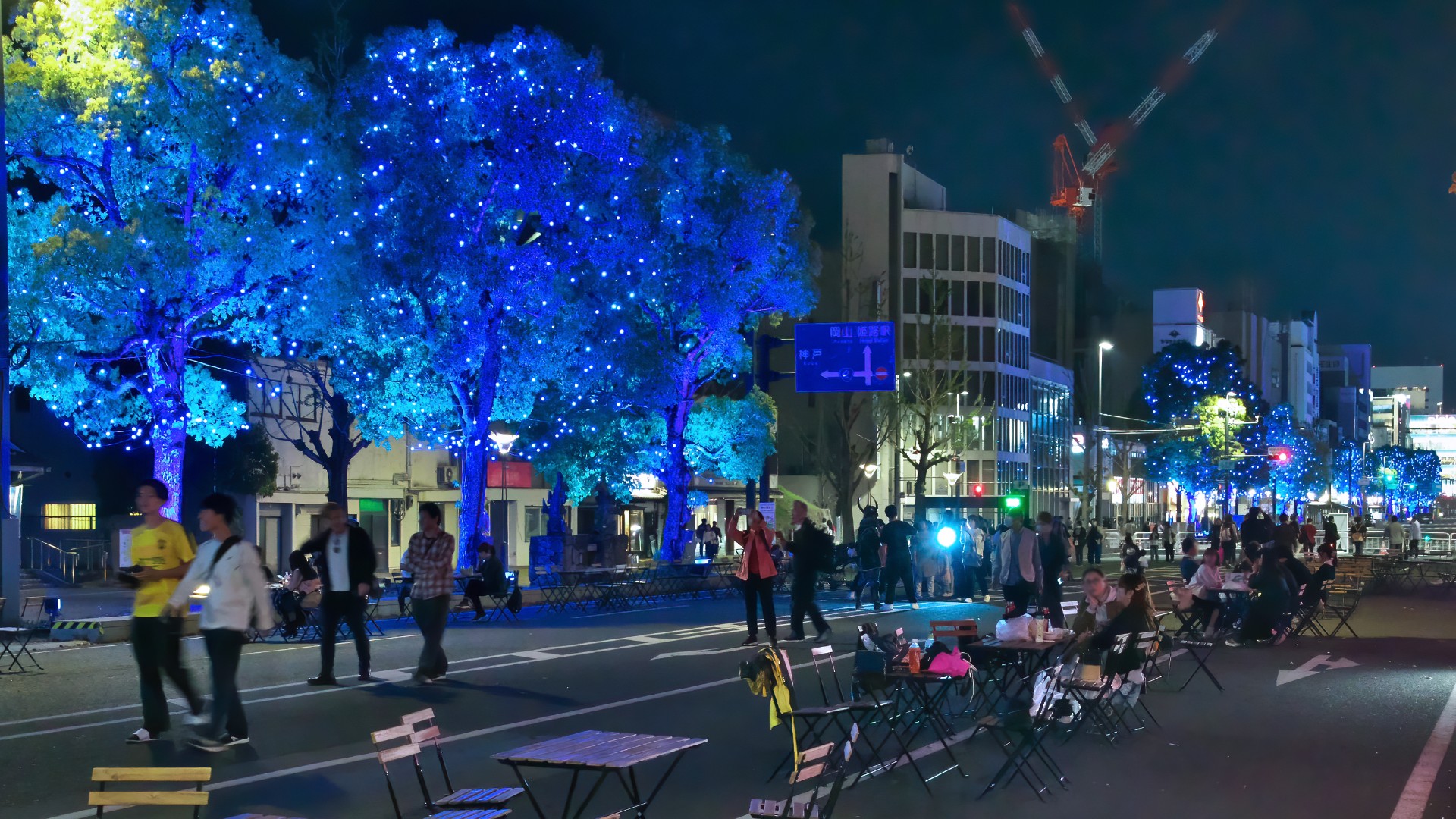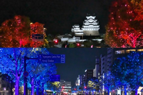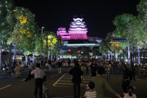姫路駅前から姫路城までの大空間を彩る光と色のイルミネーション